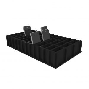Varje fack är 10x3cm vilket gör att även mobiler med plånboksskal får plats.